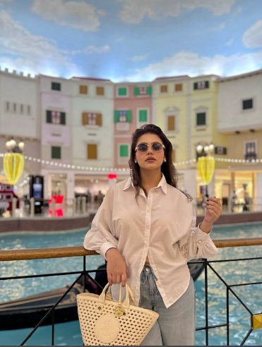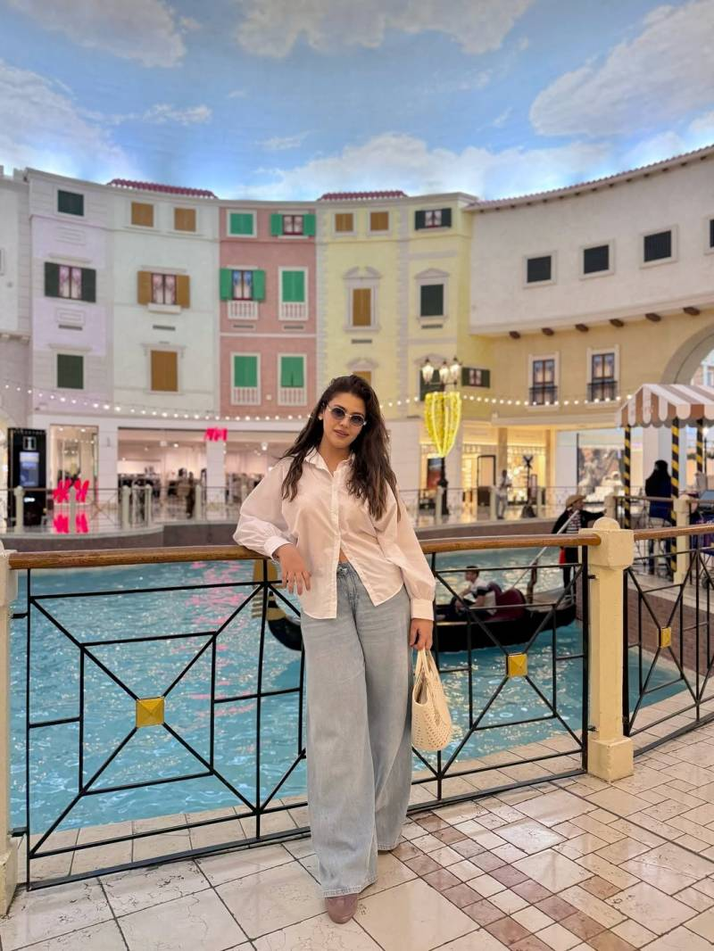 In the post, Zara humorously wrote, “I think it’s safe to say that Noorejahan will take on my bags happily,” hinting at her daughter’s curiosity and growing personality. The image shows the mother-daughter duo enjoying a relaxed outing, with Zara sporting an oversized white button-down shirt, blue jeans, and sunglasses. Her effortless look suited the chic interior of the shopping destination, known for its refined atmosphere and indoor Venetian-inspired canals.