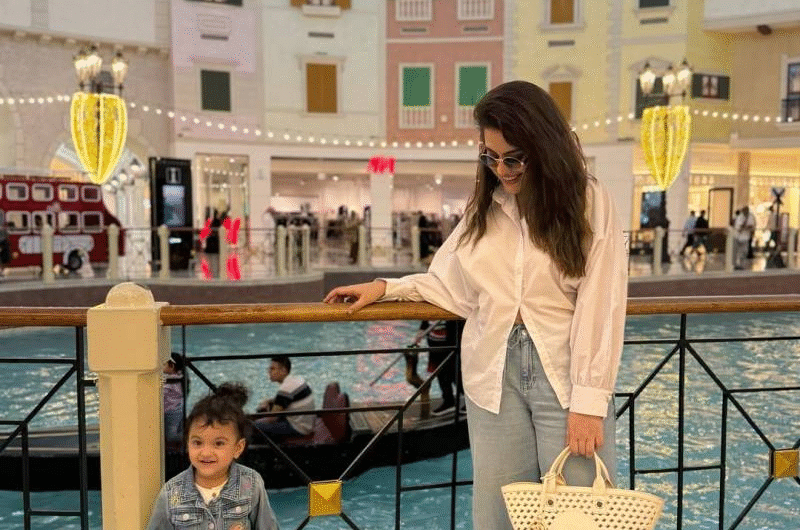 Zara Noor Abbas delighted her followers with a tender glimpse into her personal life, sharing an adorable moment with her daughter, Noorejahan. The actress posted a candid photograph from Villaggio Mall in Doha, capturing a playful exchange that quickly won over fans online.